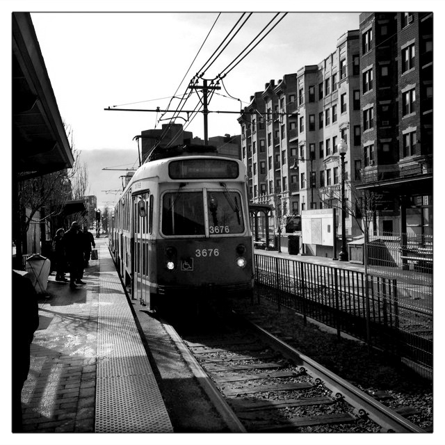 The E line, Boston. [Shot on iPhone 5 with Hipstamatic, John S lens, Rock BW-11 film. Processed in PhotoForge]